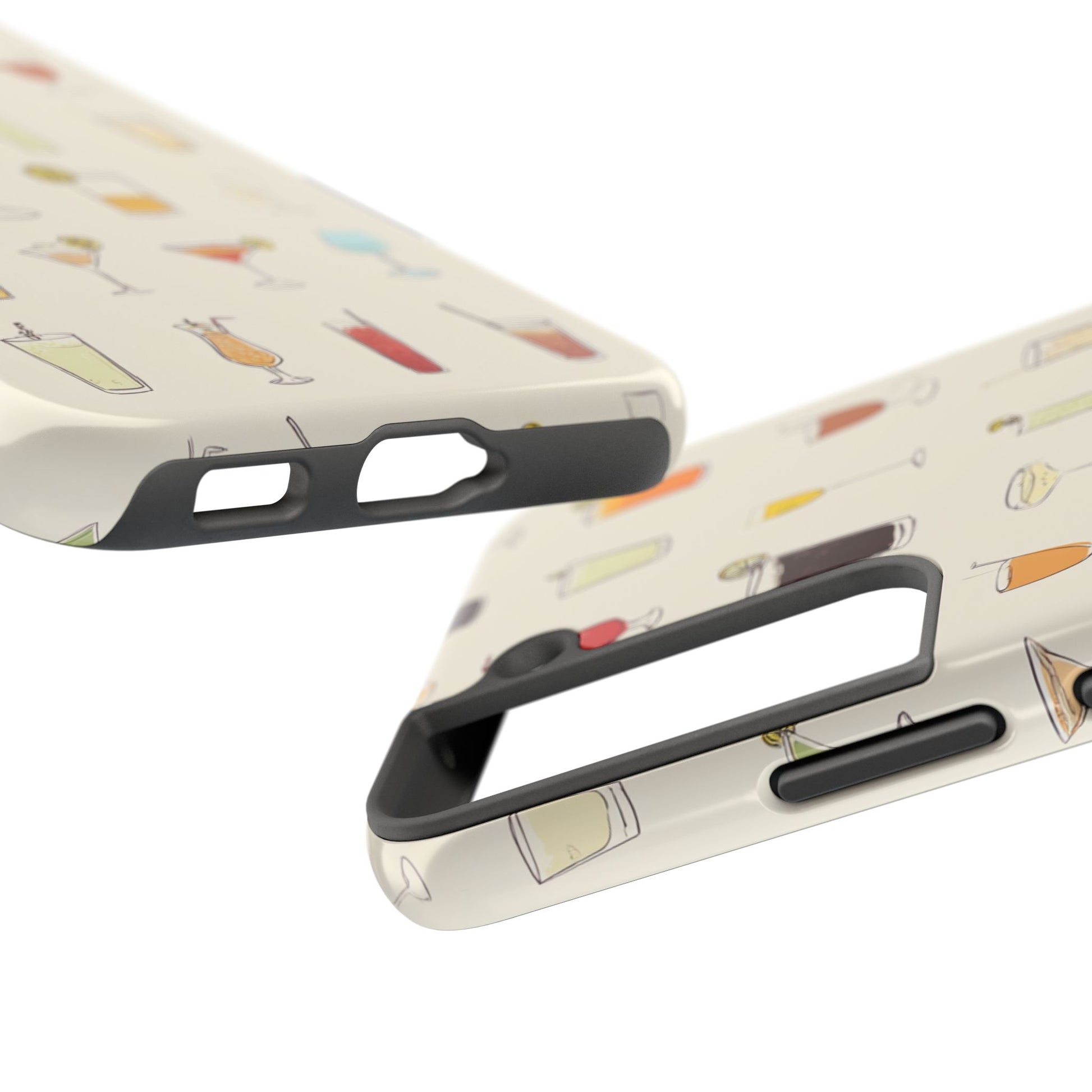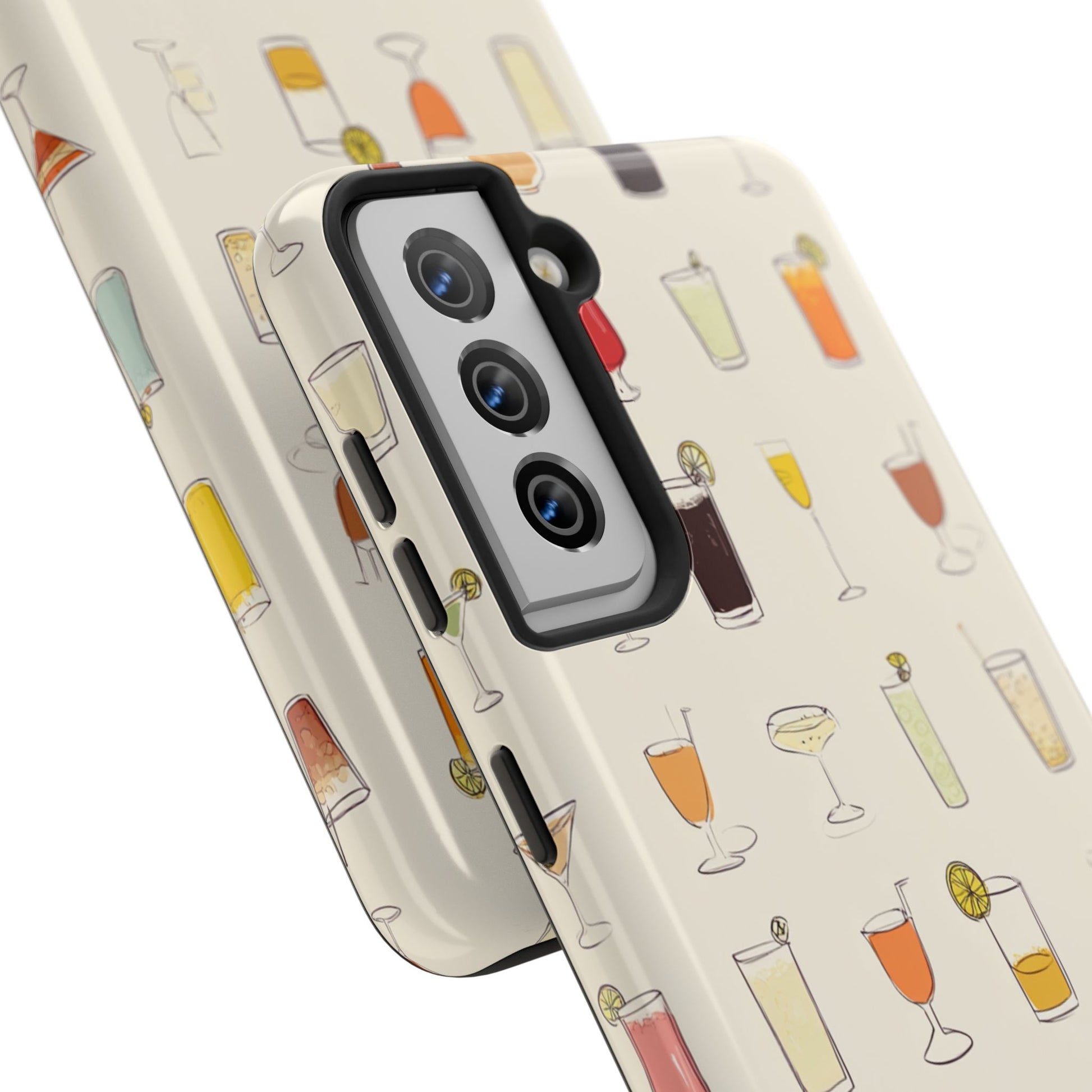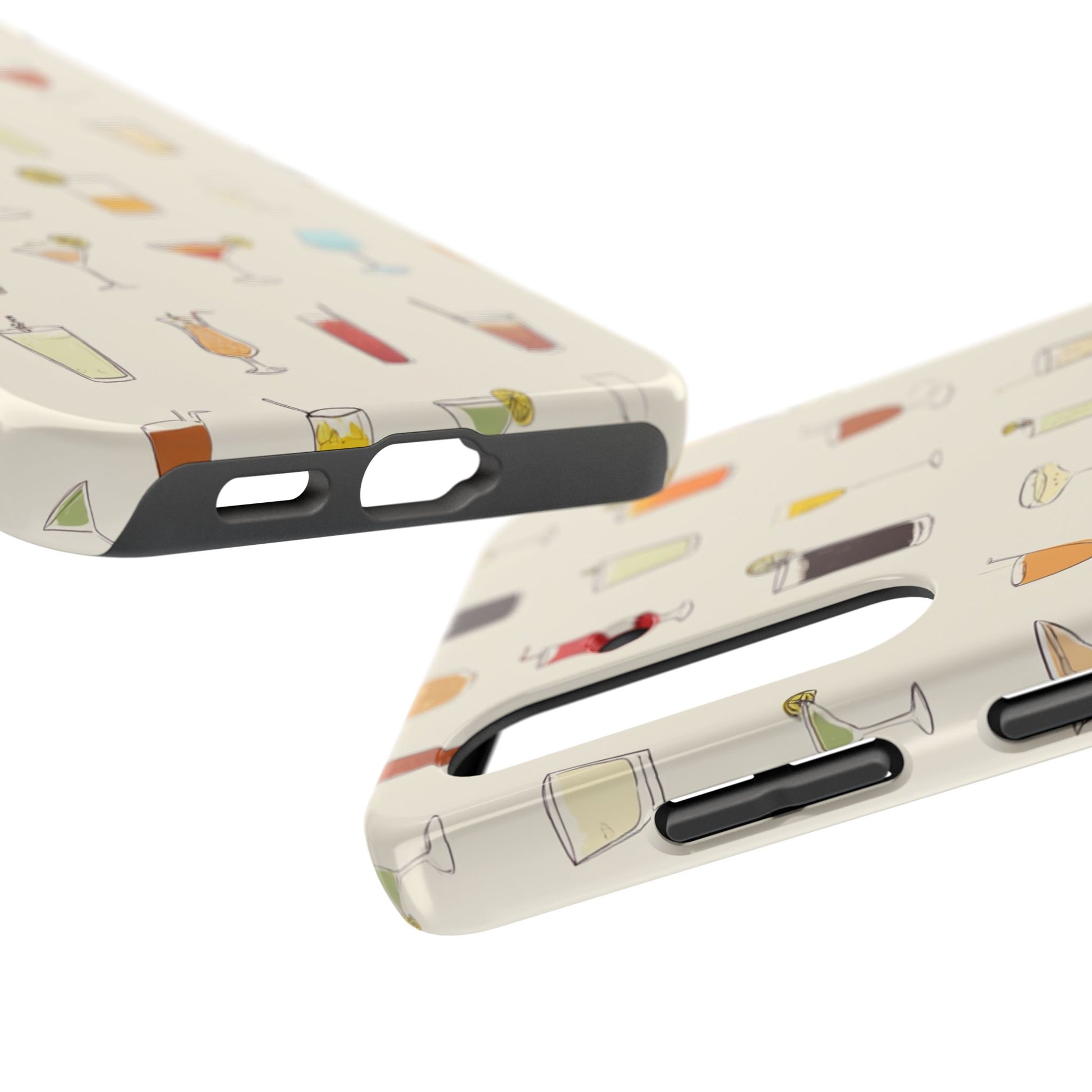 This slim, durable phone case brings a playful cocktail-pattered design to everyday carry. The hard polycarbonate shell and flexible TPU liner work together to absorb shocks and disperse impacts, while a lay-flat bezel shields the screen from light scratches. The glossy finish makes the illustrated drinks pop against a warm cream background, and UV protection helps keep colors vibrant through outdoor use. Lightweight and wireless-charging friendly, it’s a cheerful way to protect a modern smartphone while showing off a love of happy-hour vibes and relaxed gatherings.