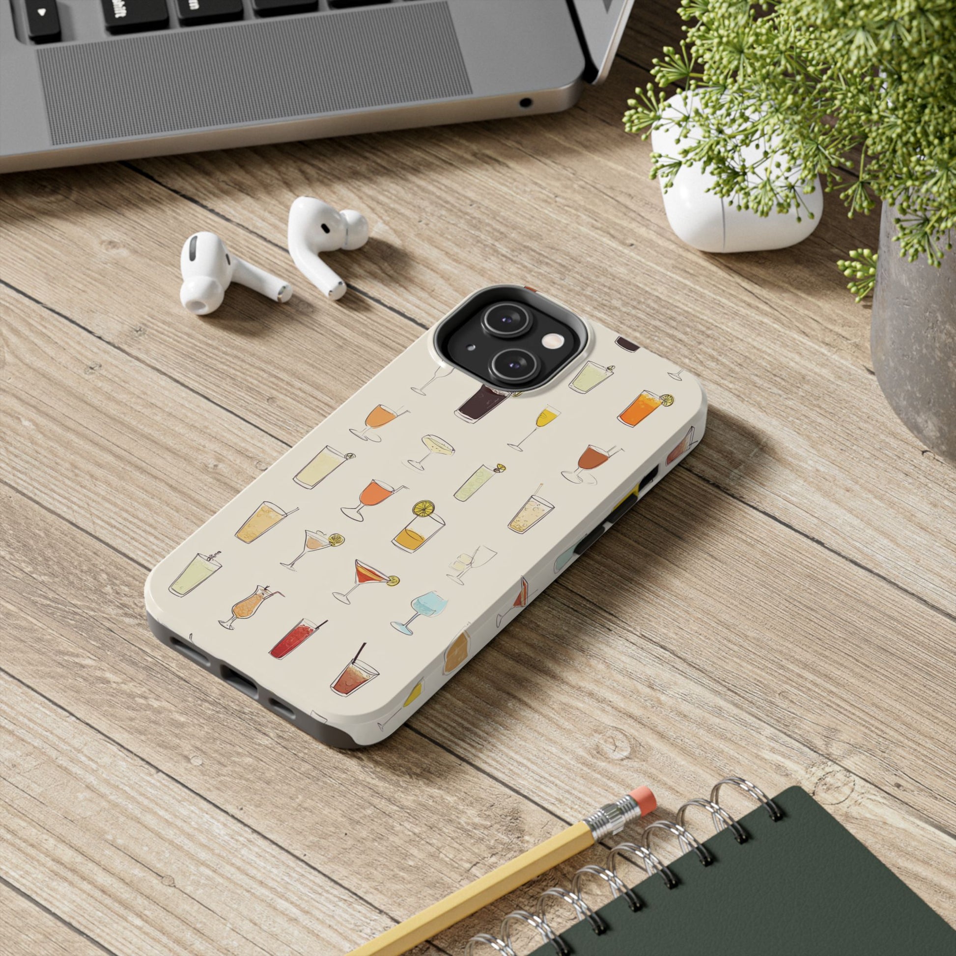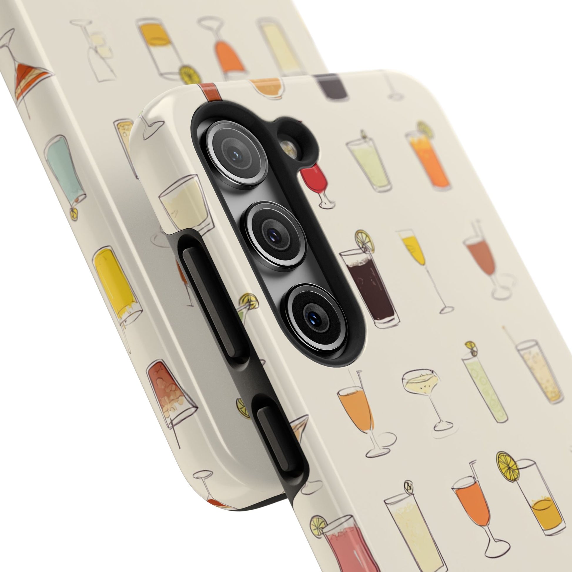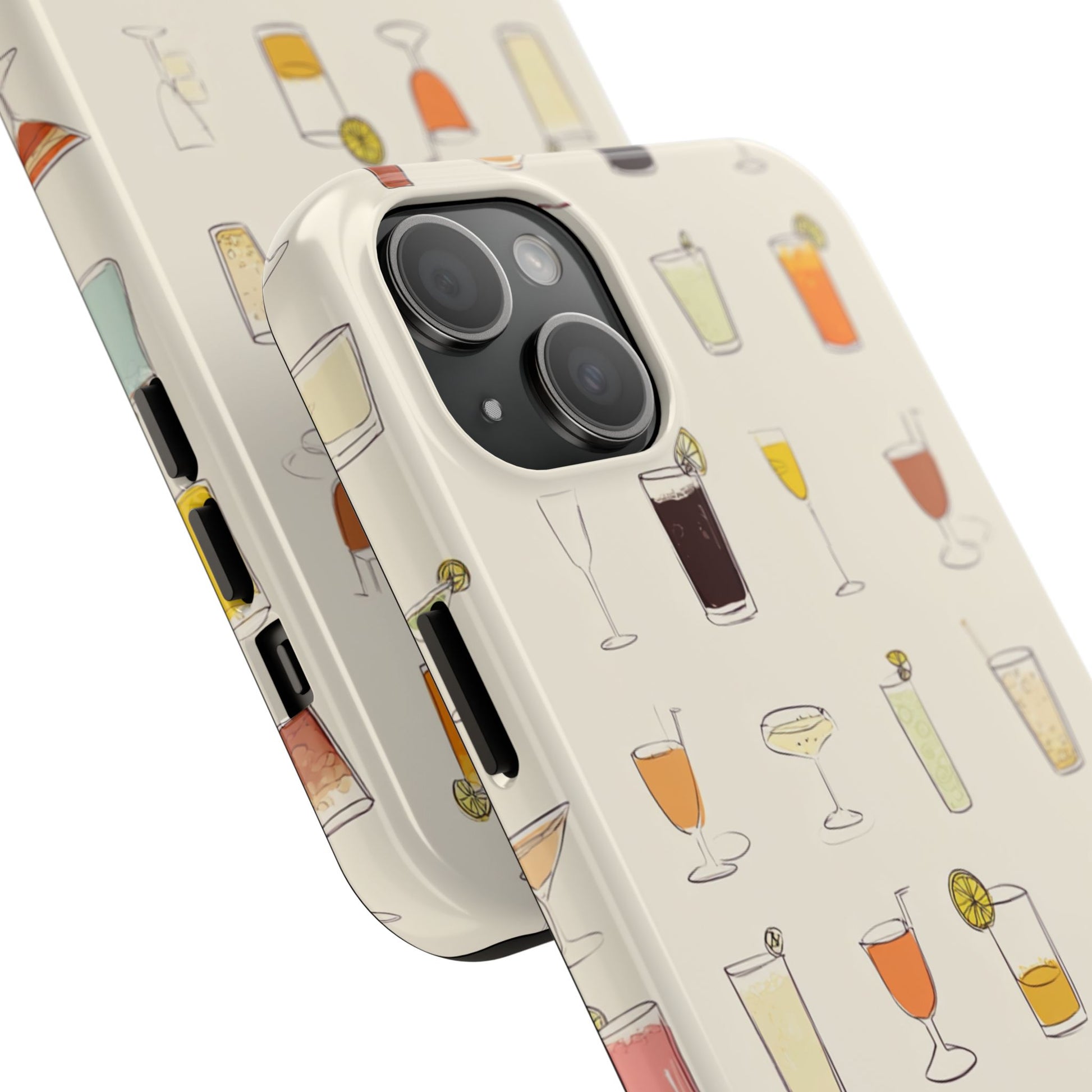 This slim, durable phone case brings a playful cocktail-pattered design to everyday carry. The hard polycarbonate shell and flexible TPU liner work together to absorb shocks and disperse impacts, while a lay-flat bezel shields the screen from light scratches. The glossy finish makes the illustrated drinks pop against a warm cream background, and UV protection helps keep colors vibrant through outdoor use. Lightweight and wireless-charging friendly, it’s a cheerful way to protect a modern smartphone while showing off a love of happy-hour vibes and relaxed gatherings.